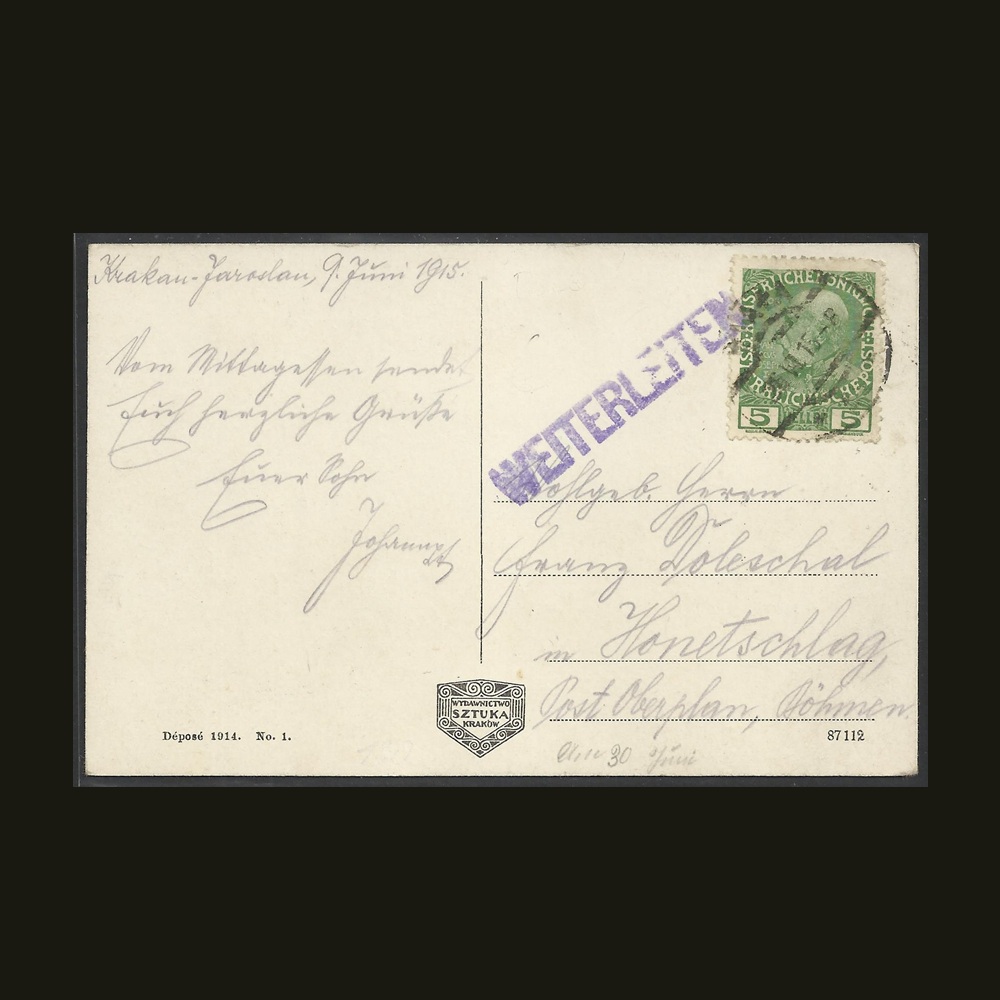 Rodzaj: kolorowana Stan: produkt kolekcjonerski (patrz skan) Data: 1915 Obieg: tak Znaczek: tak Oryginał/reprodukcja: oryginał