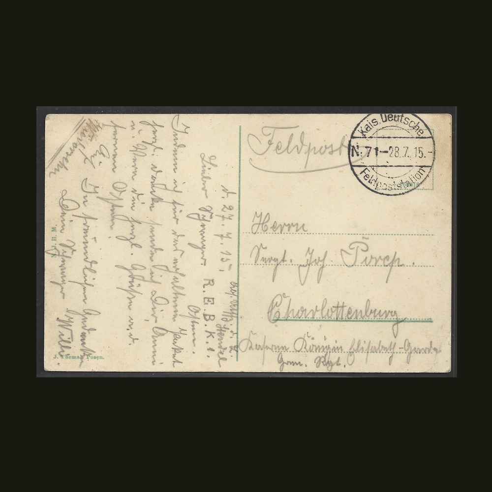 Rodzaj: światłodruk Stan: produkt kolekcjonerski (patrz skan) Data: 1915 Obieg: tak (feldpost) Znaczek: nie Oryginał: tak